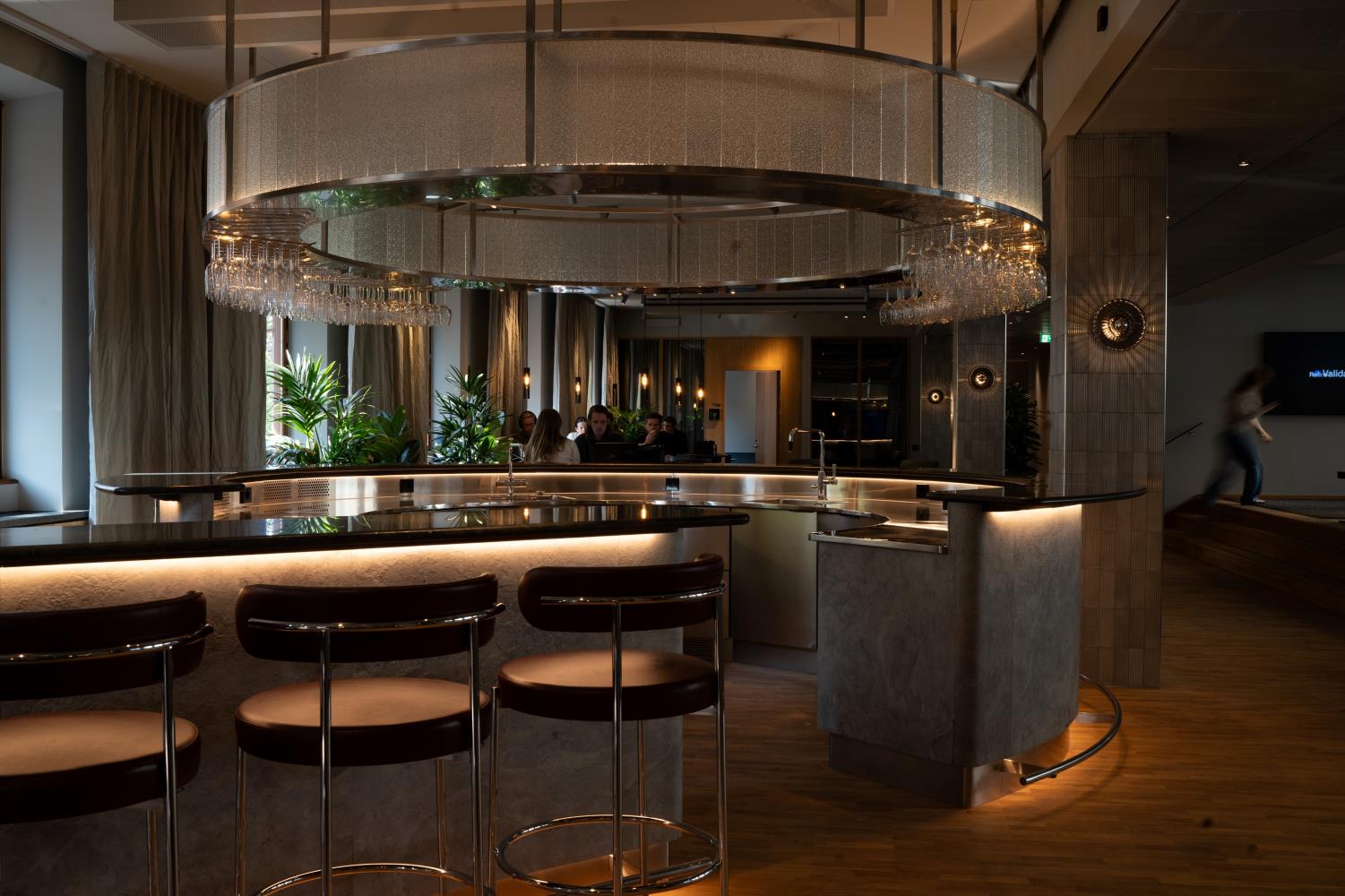 Beyond its impressive lounge areas, the office features an elegant cocktail bar, an exclusive wine bar, and a spacious dining hall that rivals a fine dining restaurant in ambiance. Scheduled scenes must compliment the architect and lighting designer’s vision to uphold the luxury and exclusivity of the establishment. User control should be seamless, with options to override the scheduled scenes for special meetings and events.