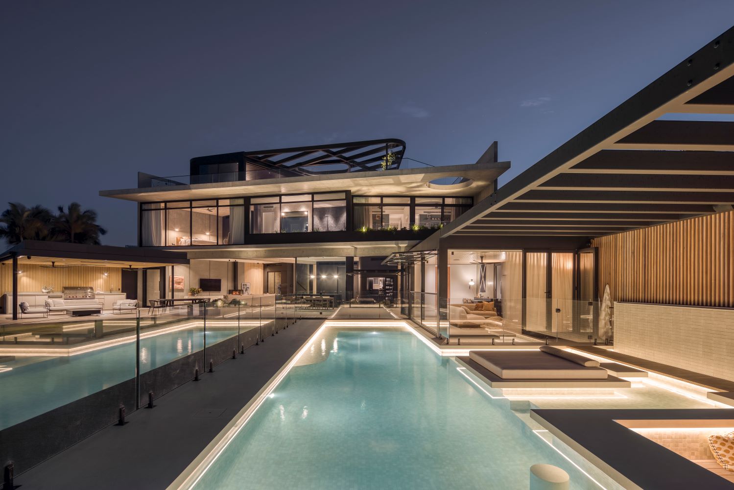 The Dynalite architecture was deemed suitable to weave together the lighting, shade control, ceiling fans, heated floors, air conditioning, motorised windows and louvers, fire pit, water features and pool pumps.