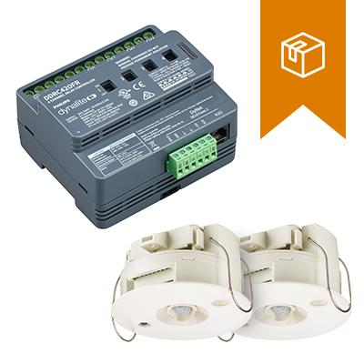 Kits have intuitive user interfaces and multifunction sensors to save energy by detecting occupancy and automatically adjust the lighting without affecting usability. Kits provide reliable switching and/or dimming with 0-10 V or DALI Broadcast control, satisfying the vast majority off lighting applications.